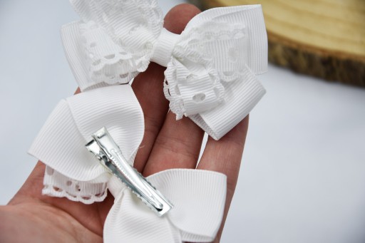 Zestaw 2 eleganskich kokardek spinek do włosów, zapiane na zatrzaskową klamre metalową