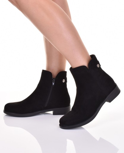DAMSKIE BOTKI NA ZAMEK PŁASKIE ZAMSZOWE SZTYBLETY CZARNE