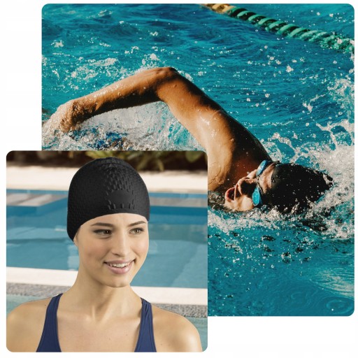 ♥️ Elastyczny materiał idealnie dopasowuje się do kształtu głowy, nie powodując ucisku ani dyskomfortu. Bąbelkowa struktura zwiększa wygodę i stabilność, zapobiegając zsuwaniu się czepka podczas intensywnych treningów. Ciesz się maksymalnym komfortem podczas pływania.