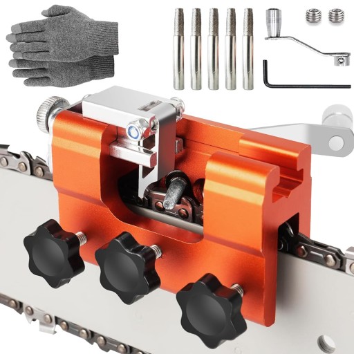 - Ostrzałka do pił łańcuchowych wykonana jest ze stopu aluminium i stali nierdzewnej, ma długą żywotność i jest trwała, a także mała i przenośna.
