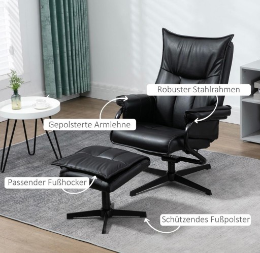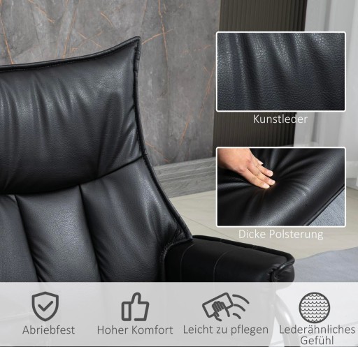 Na koniec dnia zafunduj sobie komfortową przerwę z tym fotelu. Przestronne, rozkładane oparcie z wyściełanym zagłówkiem zapewnia doskonałe wsparcie. Wszechstronna miękka wyściółka zapewnia długotrwały komfort, a elastyczna skóra syntetyczna dodaje eleganckiego charakteru. Dzięki kątowi do 135° fotel ten zapewnia idealne warunki do relaksu.