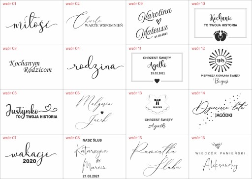 - Dane do personalizacji (np. Marek, Kasia 25.06.2021)