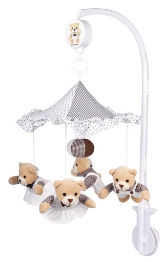 Kolorowa karuzela z pozytywką MISIE Z BALDACHIMEM przeznaczona jest dla dzieci, które jeszcze nie poruszają się samodzielnie.