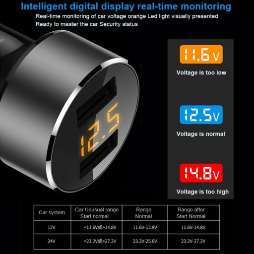 Funkcje 2: wyświetlacz LED ładowarki samochodowej USB