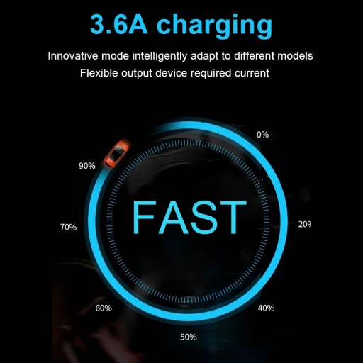 Funkcje 4: podwójna ładowarka samochodowa USB, 2-portowa dioda LED