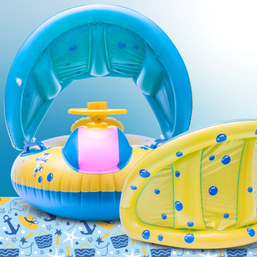 Czy Twoje dziecko kocha wodę? Jeżeli tak to mamy dla Ciebie idealne rozwiązanie na ciepłe, letnie dni – Koło do pływania Materac dmuchany Pontonik dla dzieci z daszkiem i kierownicą!