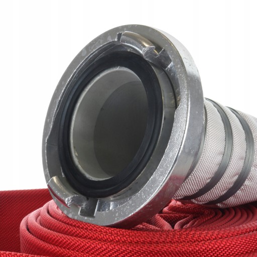 Wąż strażacki wyposażony jest w dwa aluminiowe złącza STORZ 4 cale (100 mm).