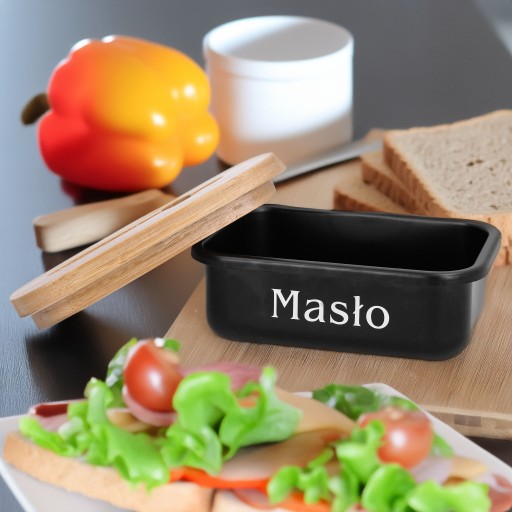 Maselniczka czarna z nożykiem maselnica pojemnik na masło z pokrywką 15x10