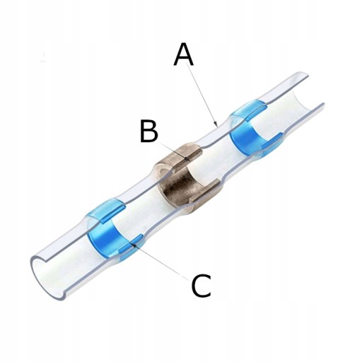 Cyna wewnątrz - dla osiągnięcia najlepszych wyników zalecamy stosowanie gorącego powietrza, aż do momentu zmniejszenia się rozmiaru i rozpuszczenia kleju, który wypełni luki w koszulce. Ważne jest także ciągłe obracanie złącza podczas procesu podgrzewania, aby równomiernie ogrzać koszulkę;