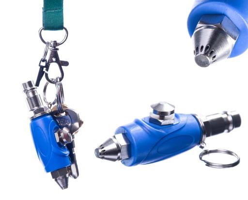 Niewielkie wymiary oraz kółeczko pozwalają na przypięcie go do kluczy, dzięki czemu pistolet do przedmuchiwania jest zawsze pod ręką.