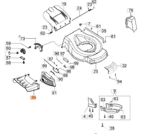 Deflektor bocznego wyrzutu kosiarki Oleo-Mac - część oryginalna