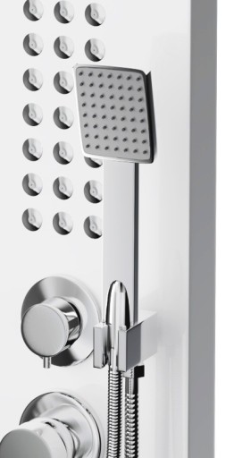 Душевая панель белая с гидромассажем + водопад + излив + стеклянная полка