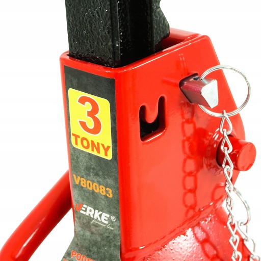 Profesjonalne podstawki samochodowe 3T marki Verke Premium Line. Podstawki wykonane z grubych stalowych profili, posiadają wygodną w obsłudze zapadkową blokadę wysokości oraz dodatkowy klin zabezpieczający, co zapewnia maksymalny poziom bezpieczeństwa, niedostępny w innych modelach. Dodatkowym atutem tych podstawek jest nóżka zakończona szeroką stopą, dzięki której podstawki nie wbijają się w podłoże pod naciskiem podpartego przedmiotu. Chroni to podłożę przed zniszczeniem oraz zwiększa stabilność podpór. Ich solida i mocna konstrukcja zapewnia sprawne i długotrwałe użytkowanie. Szczególnie dedykowane profesjonalnym warsztatom samochodowym ale znajdzie również zastosowanie w przydomowych garażach. Idealne narzędzia dla mechaników jak i wszystkich zmotoryzowanych.