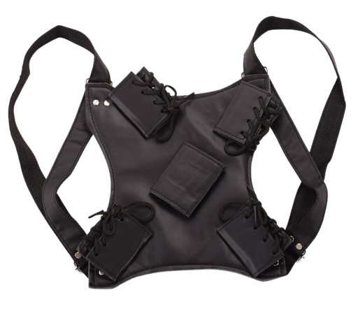 - Do stroju dołączone są dwa drewniane miecze oraz kabura z szelkami na plecy,