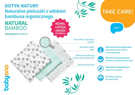 Delikatne włókna bambusowe wymagają odpowiedniej temperatury podczas prania - dzięki temu zostanie zachowana miękka struktura pieluszki.