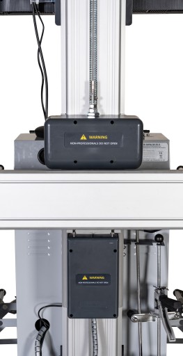 Brak urządzeń elektrycznych na kołach, brak kabli i sygnału pomiędzy głowicami a urządzeniem – specjalne plastikowe kamery/odblaski. Pozwala to uniknąć kosztownych kalibracji czy napraw w przypadku upadku głowic. Brak problemów z ładowaniem baterii czy brakiem sygnału jest ważnym elementem wygody obsługi.