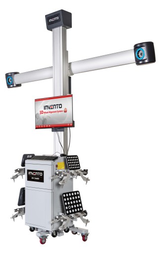Urządzenie do geometrii Invento S400 to wyższy model z gamy Invento Silver przeznaczony głównie do pracy z podnośnikiem nożycowym bądź czterokolumnowym. Automatyczna regulacja kamer pozwala na pracę z podnośnikiem.