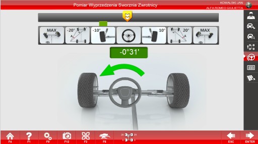 Funkcja pozwala regulować kąty przy zdjętym kole. Ułatwia to pracę przy trudnodostępnych zawieszeniach.
