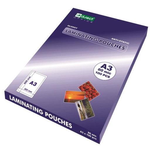 Błyszcząca dwustronnie i antystatyczna folia laminacyjna w formacie A3 (303 x 426 mm) i grubości 80 mic. Każda folia składa się z dwóch arkuszy folii ze zgrzanym jednym brzegiem. Nadaje dokumentom wysoki połysk i sztywność. Chroni przed zalaniem, zawilgoceniem, zabrudzeniem i uszkodzeniami mechanicznymi. Poprawia kolorystykę laminowanych zdjęć i dokumentów, pozwalając na przygotowanie np. atrakcyjnej prezentacji. Folia nie elektryzuje się. Do laminowania na gorąco. Opakowanie zawiera 100 sztuk.