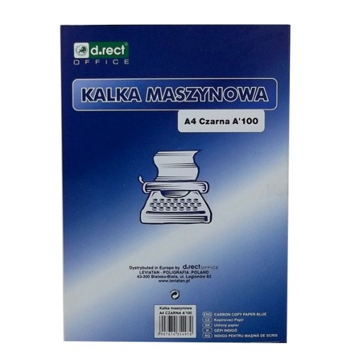 Kalka maszynowa przeznaczona do jednoczesnego sporządzania wielu kopii pisma maszynowego. Samoregenerująca - umożliwia wielokrotne wykorzystanie arkuszy. Opakowanie zawiera 100 sztuk czarnych arkuszy w formacie A4.