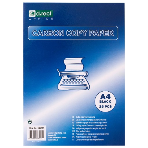 Kalka maszynowa przeznaczona do jednoczesnego sporządzania wielu kopii pisma maszynowego. Samoregenerująca - umożliwia wielokrotne wykorzystanie arkuszy. Opakowanie zawiera 25 sztuk czarnych arkuszy w formacie A4.