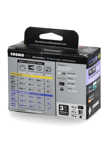 Latarka czołowa Black Diamond Cosmo 350 jest modelem, który cechuje się wysoką wytrzymałością i niską wagą. Z powodzeniem wykorzystasz ją zarówno podczas biegów górskich jak i na skiturach.