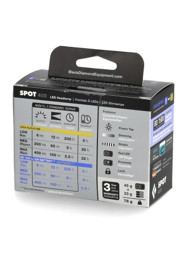 Latarka czołowa Black Diamond Spot 400 dzięki zastosowanym rozwiązaniom doskonale spisze się wśród najbardziej wymagających użytkowników, który poszukują trwałej i lekkiej czołówki sprawdzającej się w każdych warunkach.