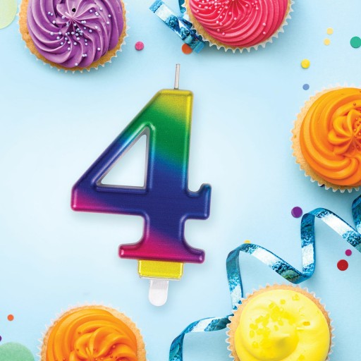 Świeczka na tort "Cyfra 4", tęczowa, Godan, 9,5 cm, PARTYUMARTY