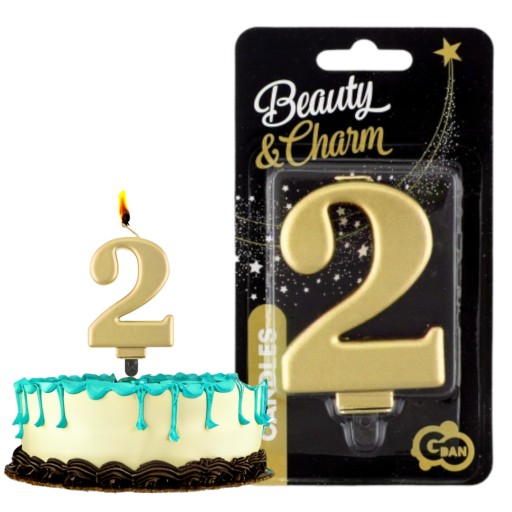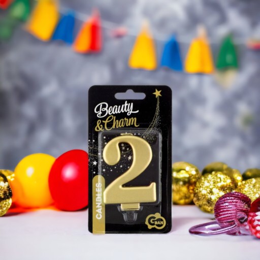 ŚWIECZKA CYFERKA 2, METALICZNA ZŁOTA, B&C