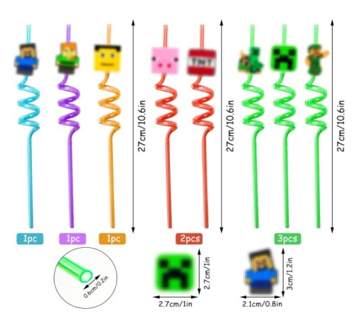 ПЛАСТИКОВЫЕ КУРИВНЫЕ СОЛОМОЧКИ ДЛЯ ДНЯ РОЖДЕНИЯ 8 ШТ MINECRAFT