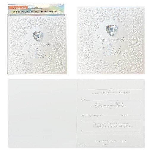 aproszenia z serii Premium ZP wyróżniają się elegancją i wyjątkowym opakowaniem. Zdobienia w zależności od wzoru zawierają dekoracyjne elementy doklejane - perełki, kokardki, akcenty biżuteryjne; tłoczenia oraz przynajmniej dwie uszlachetnienia, takie jak folia perłowa lub holograficzna albo delikatny brokat. Zaproszenia pakowane są po 5 sztuk, mają w zestawie dopasowane koperty, a na specjalnej wkładce z tyłu można przeczytać tekst zaproszenia. Cechy szczególne: typ produktu: zaproszenie na ślubzdobienia: doklejane elementy dekoracyjne, tłoczenie przestrzenne, przynajmniej dwa uszlachetnienia z folii lub brokatu, orientacyjna wielkość: 14,5 x 14,5 w opakowaniu: 5 sztuk zaproszeń z dopasowanymi kopertami,