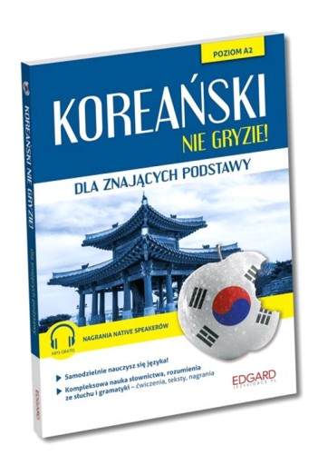 Koreański nie gryzie! Dla znających podstawy to unikalny kurs do samodzielnej, aktywnej nauki języka koreańskiego przeznaczony dla osób, które opanowały podstawy języka koreańskiego i chcą kontynuować naukę na poziomie podstawowym wyższym (A2).