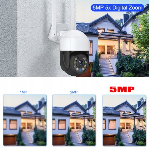 Rozdzielczość 5Mpx to bardzo wysoki standard w kamerach IP Wi-Fi, umożliwiający rejestrację wyraźnego obrazu. Podgląd na telefonie jest znakomity - a jego jakość zależy od jakości wyświetlacza posiadanego telefonu. Kamera doświetla w nocy obraz do 20 metrów, co pozwala na umieszczenie kamery z dala od obserwowanego miejsca.