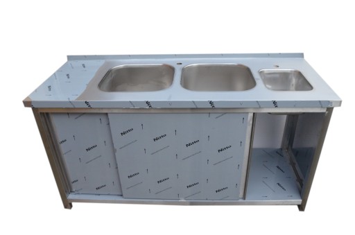 PROFESJONALNY STÓŁ - SZAFKA Z TRZEMA ZLEWAMI I DRZWIAMI PRZESUWNYMI DO FUNKCJONALNEJ KUCHNI