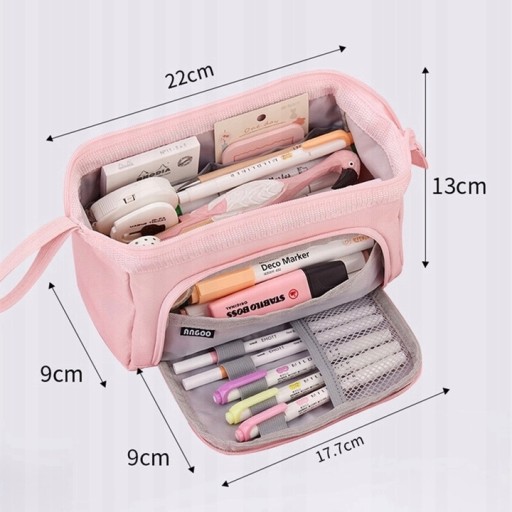 Dzięki stylowemu wzornictwu i uchwytowi ten piórnik może spełnić Twoje różne potrzeby i uporządkować artykuły papiernicze i akcesoria. Różne przegrody mają różne funkcje i mogą być używane jako piórnik, kosmetyczka, organizer na co dzień, schowek na biurko, etui podróżne, uchwyt na telefon i nie tylko.