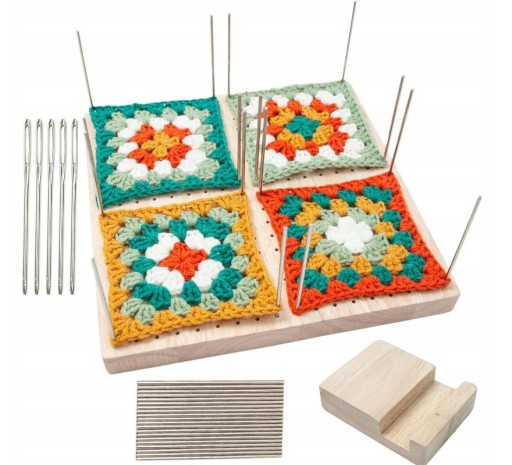 1. Kwadraty babci: Osiągnij perfekcyjnie ukształtowane kwadraty babci za pomocą naszej tablicy blokującej i kołków blokujących dokładność. Zapewnij symetrię, równomierne napięcie i wyraźne krawędzie dla oszałamiających kreacji szydełkowych.