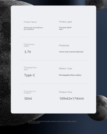 Nazwa produktu: Dyfuzor olejków eterycznych do aromaterapii astronautów i lampka nocna LED wykrywająca ciało