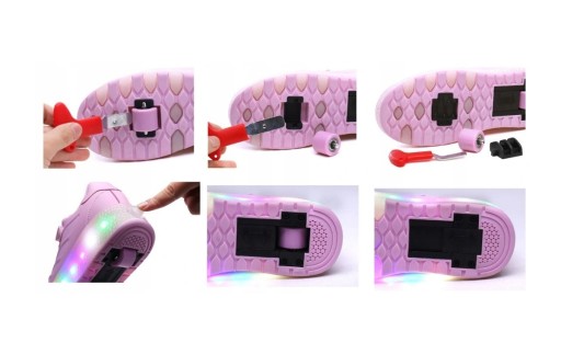Podświetlenie led uruchamia się automatycznie przy każdym kroku (tupnięciu) lub można w dowolnym czasie je włączać/wyłączać przy pomocy przycisku schowanego przy języku buta.BUTY z ROLKAMI świecące LED DziecięceDługość wkładek:Rozmiar 28 = 18CMRozmiar 29 = 18.5CMRozmiar 30 = 19.2CMRozmiar 31 = 19.8CMRozmiar 32 = 20.2CMRozmiar 33 = 20.7CMRozmiar 34 = 21.5CMRozmiar 35 = 22.3CMRozmiar 36 = 22.8CMRozmiar 37 = 23.5CMRozmiar 38 = 24CMRozmiar 39 = 24.5CMRozmiar 40 = 25CM