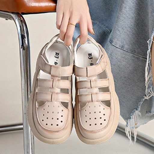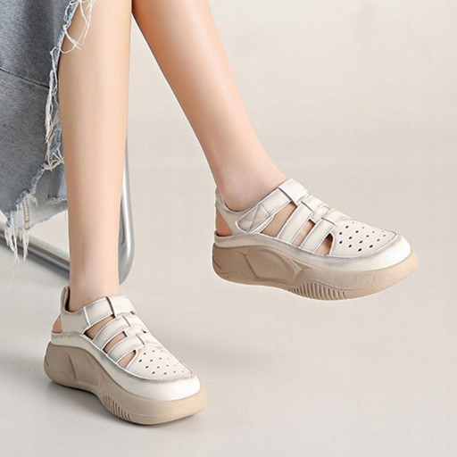 Damskie sandały na platformie Hollow Out PU Skórzane oddychające sandały z zamkniętymi palcami 39