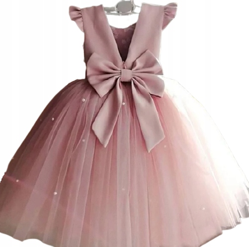 Śliczna sukienka perełki tiul róż wizytowa bal