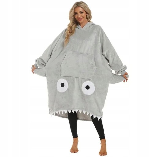 CIEPŁY KOC Z KAPTUREM ŚPIWÓR PIDŻAMA REKIN