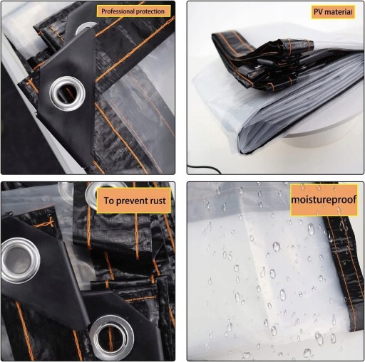 Materiał Premium: Tkanina plandek wykonana jest z wysokiej jakości i wytrzymałej tkaniny polietylenowej. Przezroczysta plandeka jest wyposażona w praktyczne i stabilne oczka wykonane ze stali nierdzewnej, dzięki czemu można ją łatwo zamocować.