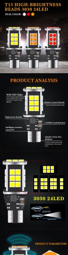 2PCS W16W T15 LED Bulbs Canbus No Error 24 Chips 3030SMD LED Backup Reverse Light 921 912 W16W T16 Bulbs Car Signal Light White Amber Red 12V