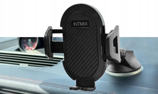 - Oferowany uchwyt samochodowy charakteryzuje się elastycznym mocowaniem, które umożliwiają jego montaż zarówno na przedniej szybie, jak i na desce rozdzielczej