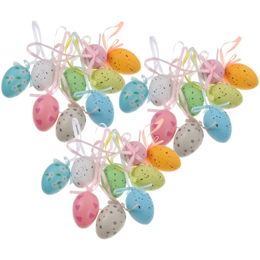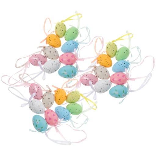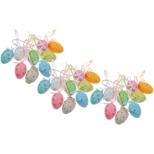 Żywe kolory sprawiają, że te pisanki są pomysłowe i kreatywne, aby dodać więcej atmosfery wielkanocnej. Dzięki wiszącemu projektowi można go łatwo zawiesić na choinkach wielkanocnych, drzwiach i oknach, światłach upuszczanych, kominkach itp. Wykonane z tworzywa sztucznego, bezpieczne i wielokrotnego użytku.