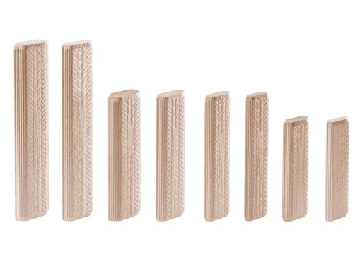 Specjalny kształt kołków DOMINO, w połączeniu z pęczniejącymi „kieszeniami klejowymi” i bocznymi rowkami wzdłużnymi, sprawiają, że kołki pewnie trzymają.