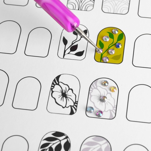 Do wyboru jest 12 arkuszy, różne rodzaje wzorów do ćwiczeń paznokci.