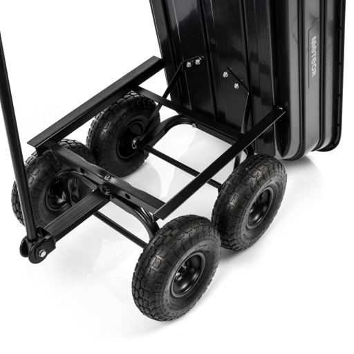 - Duża pojemność - wózek pomieści aż do 250 kg ładunku, co czyni go idealnym do transportu trawy, liści, drewna, worków z ziemią czy nawozów. Zapewnia to uniwersalność podczas intensywnych prac ogrodowych.