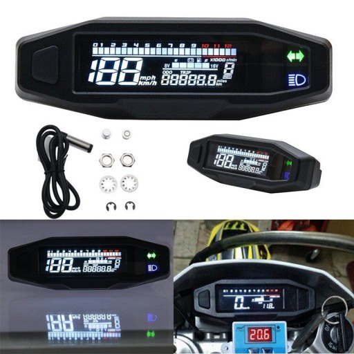 Mimo kompaktowego rozmiaru, mini prędkościomierz posiada czytelny wyświetlacz LCD, który pozwala na łatwe odczytywanie parametrów podczas jazdy na motocyklu zarówno w ciagu dnia, jak i w nocy. Dodatkowo, mimo  mniejszego rozmiaru,  prędkościomierz  oferuje różnego rodzaju dodatkowe funkcje, takie jak wskaźnik poziomu paliwa, wskaźnik obrotów itd.