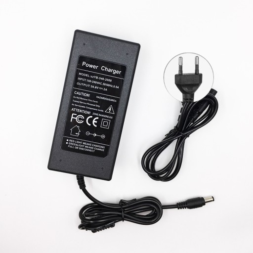 Zasilacz DC 54,6 V / 2A, ładowarka akumulatorów litowych 5,5 mm z wtyczką, do pojazdów elektrycznych / akumulatorów, 3-stopniowy impuls, gwarancja bezpiecznego ładowania, wtyczka UE AC 100-240 V.